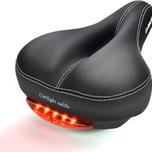 Men Women Bike Seat – C99 Memory Foam Padded Leather Wide Bicycle Saddle Cushion with Taillight, Waterproof, Dual Spring Suspension, Soft, Breathable, Universal Fit